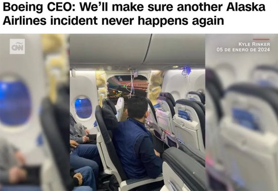 •今年年初,美国阿拉斯加航空公司一架波音737 MAX 9型客机起飞后不久发生事故,机舱侧面一处门塞脱落。