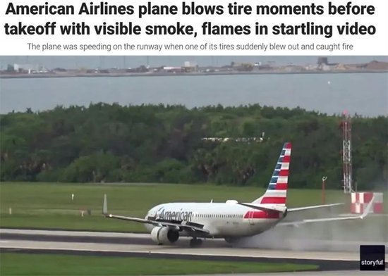 •当地时间7月10日,美国航空公司一架从佛罗里达州飞往亚利桑那州的波音737-800客机在跑道上滑行时爆胎,起落架附近冒出大量烟雾并起火。事发时,这架飞机上有174名乘客和6名机组人员,所幸事故并未造成人员伤亡。